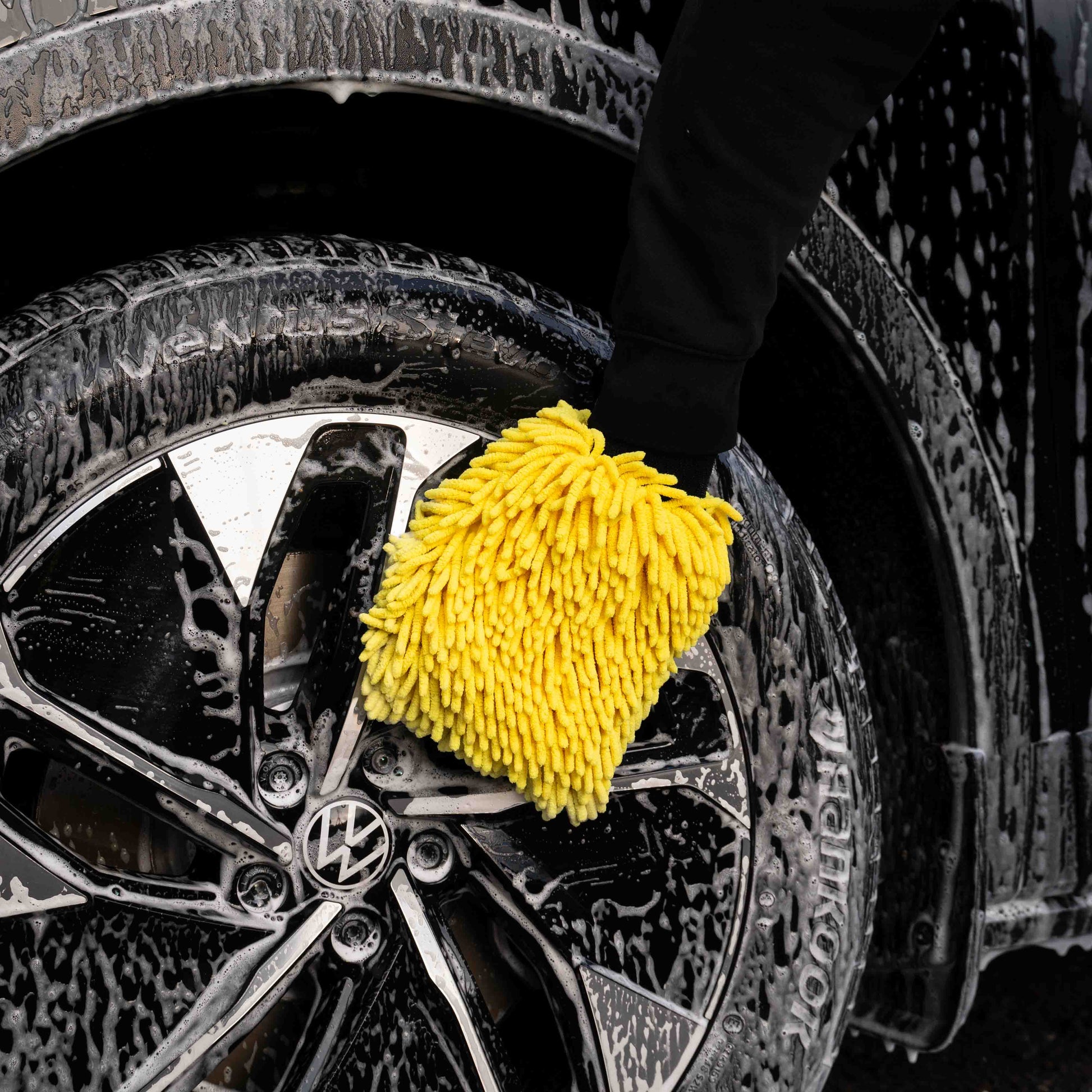 Torkduken och tvättvanten är extra mjuka och skonsamma mot lack, glas och krom – inga repor, bara ett skinande rent resultat!